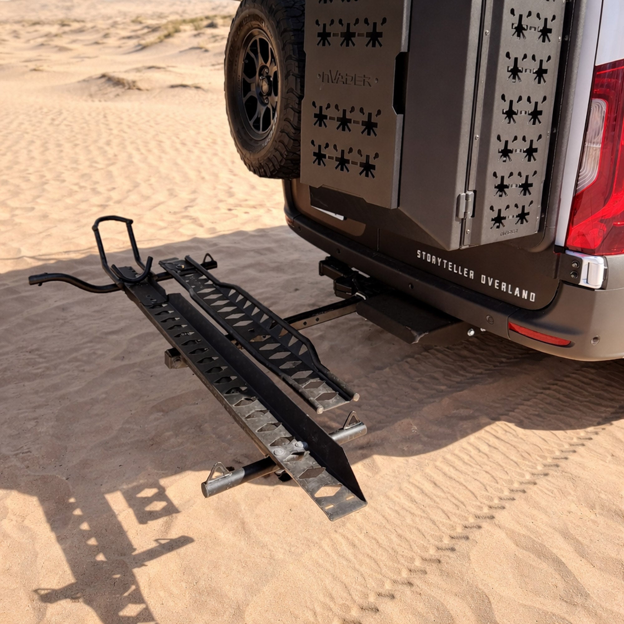 An extended square 2” hitch connection provides an additional 11” distance from the vehicle to the motorcycle hauler. Works for larger spare tires and RVs with recessed hitches under the bumper. Places platform from 18”-31” from the vehicle. Adjustable in 2” increments. Works on MTX carriers Max+, Max, Sport & m3. Not compatible with Mini bike racks.